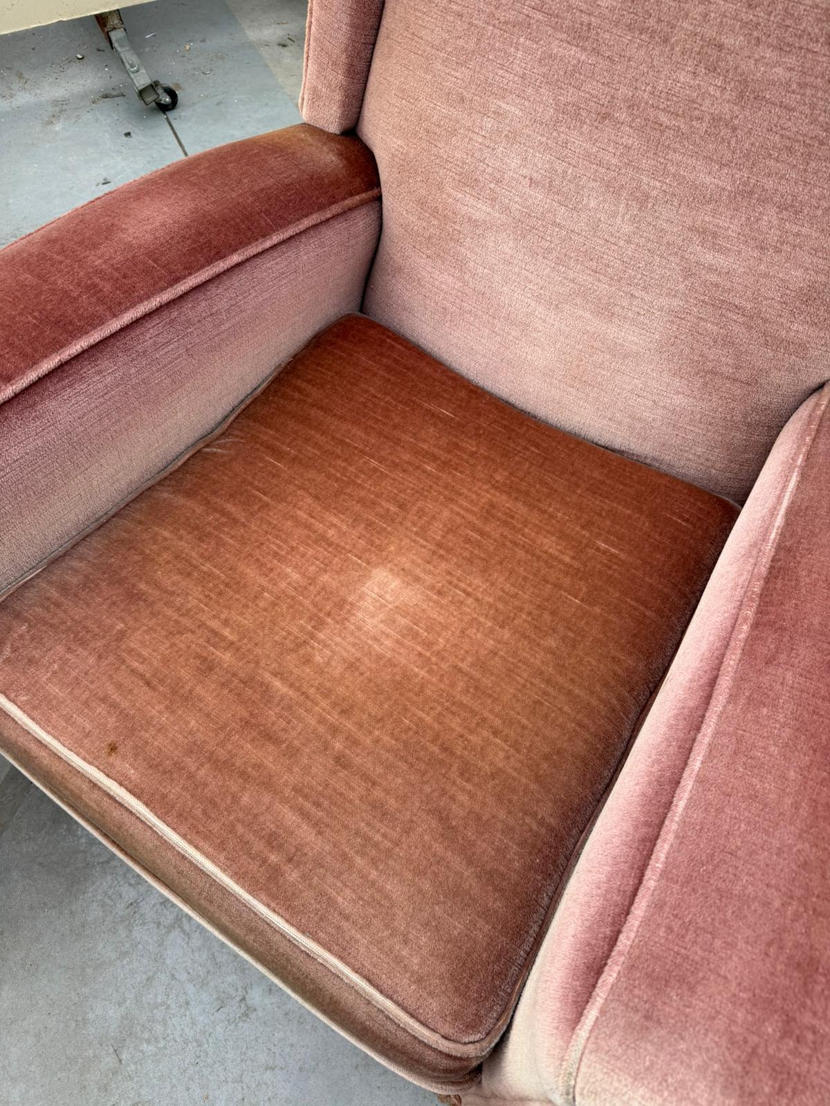 Rozā auduma atpūtas krēsls. Atpūtas krēsla kopējais platums: 80 cm; Atpūtas krēsla kopējais dziļums: 77 cm; Atpūtas krēsla kopējais augstums: